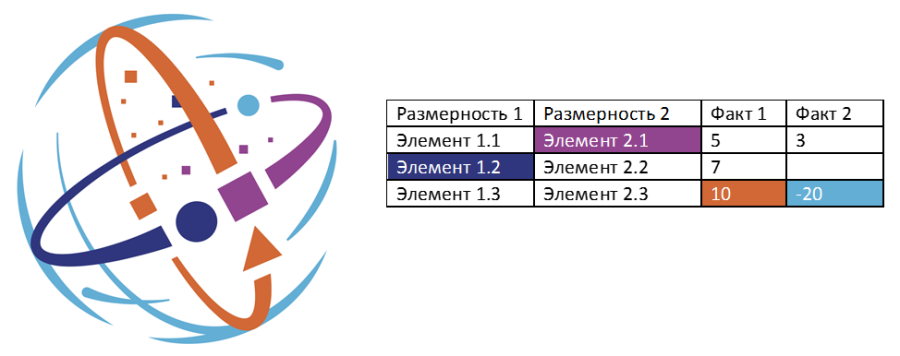 В отличие от традиционных «плоских» систем отчетности, мультисферы представляют собой многомерную структуру, в которой каждое поле может быть представлено в виде размерности или факта.