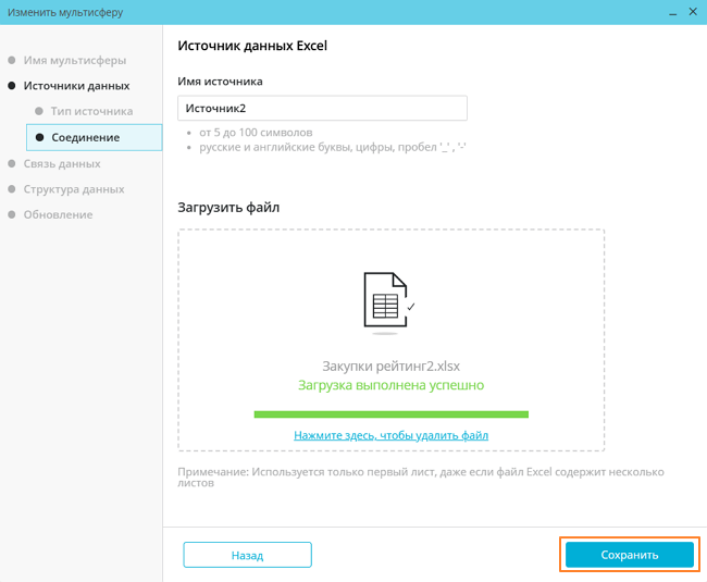 3. Обновление структуры мультисферы без загрузки нового файла (например, создана мультисфера из файла Excel, и пользователь хочет удалить из мультисферы две размерности без повторной загрузки исходного файла).