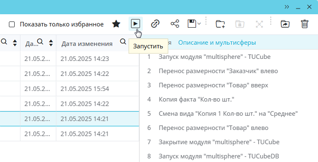 - сценарий воспроизводится после обновления мультисферы, в ходе которого изменилась ее структура в части соответствующих размерностей или элементов размерностей, в том числе при изменении сортировки данных в источнике.