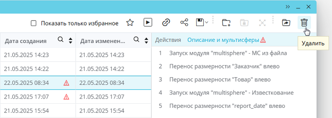 Сценарии, доступ к которым имеют несколько пользователей, отмечены значком . Такие сценарии может удалять только администратор системы. При этом пользователь может отказаться от такого сценария, чтобы удалить его из списка доступных для себя.