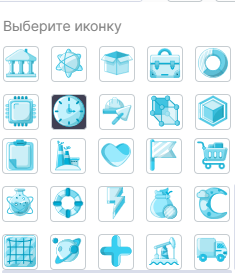 Иконка проекта - отличительный символ проекта. Для выбора иконки проекта в окне настроек проекта следует нажать на кнопку с изображением иконки. Откроется окно выбора иконки проекта: