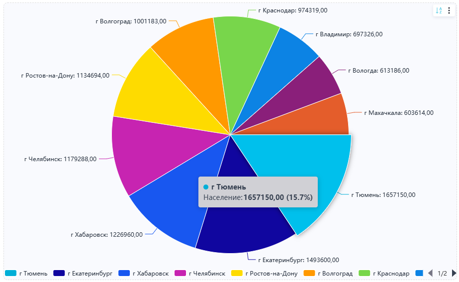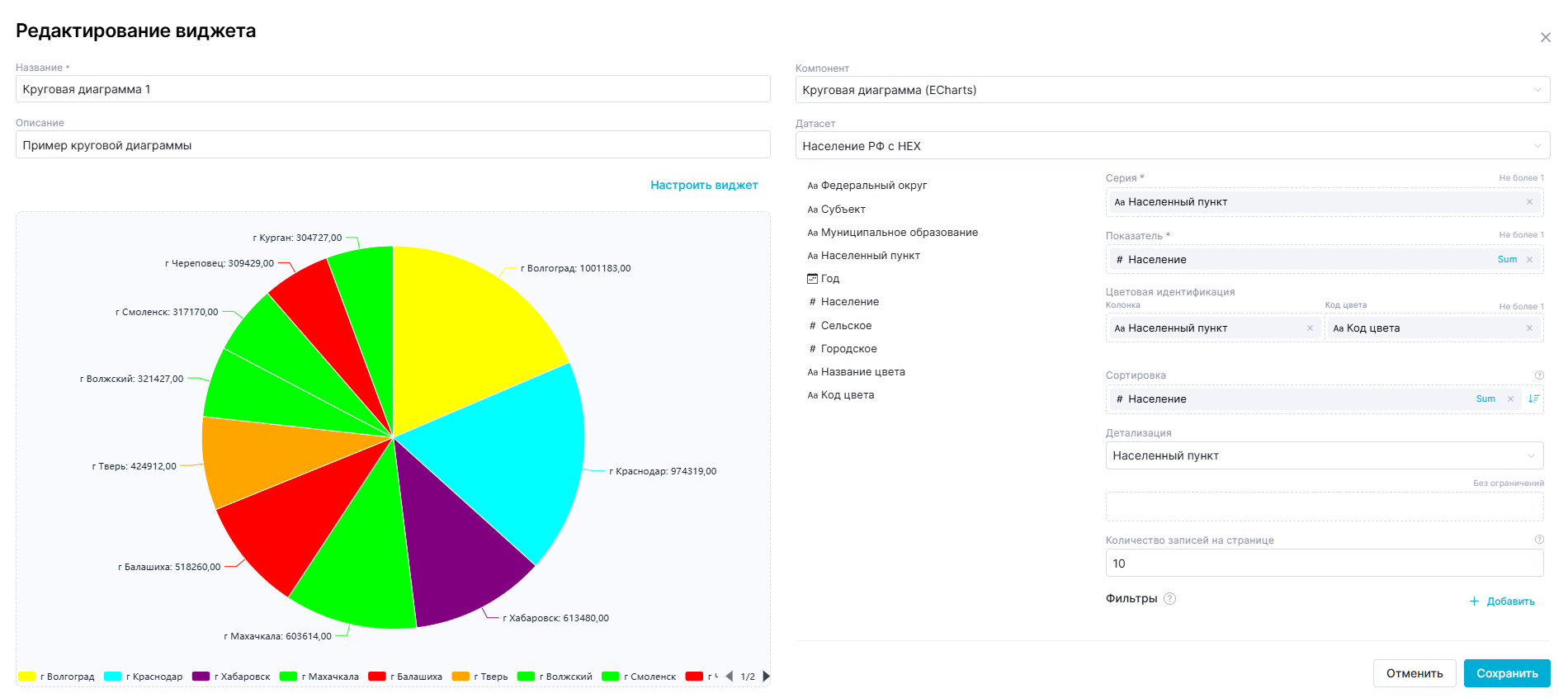 - Положение легенды – расположение легенды на виджете относительно диаграммы. Варианты: