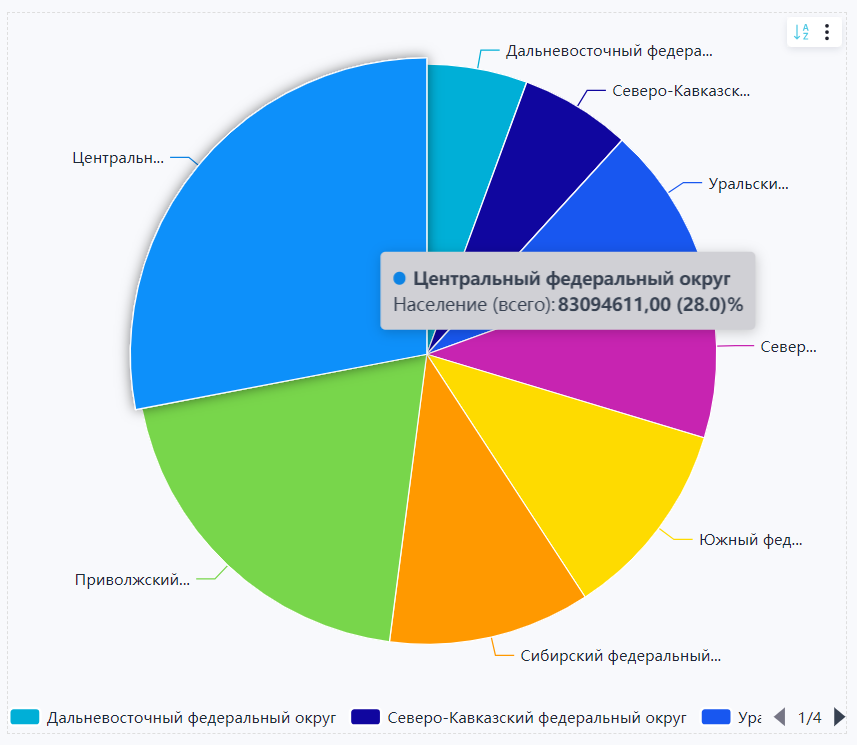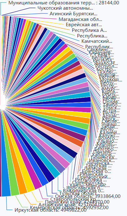 При скрытии элементов через легенду относительные (в процентах) значения пересчитываются от фактически оставшегося значения показателя (значение показателя минус значения скрытых сегментов).