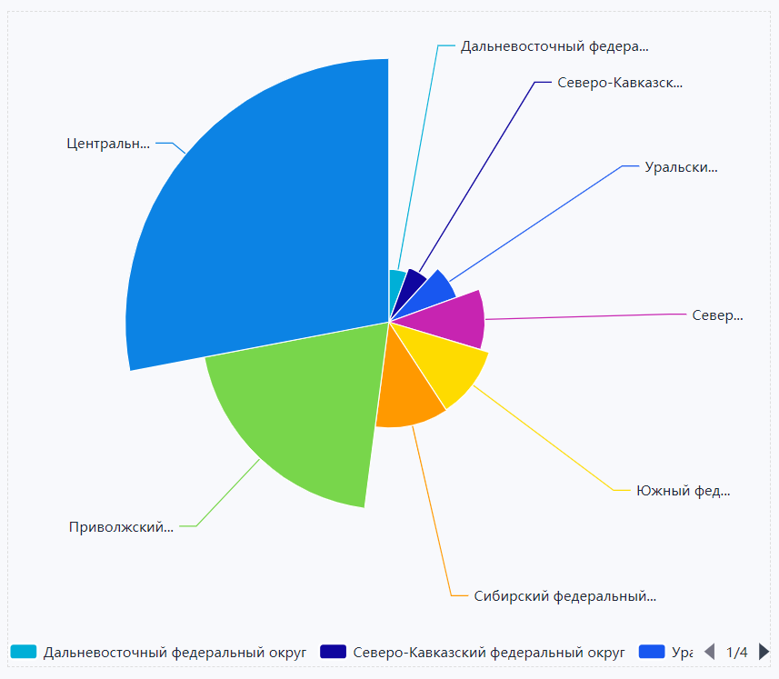 - Донат – значения поля «Показатель» представляются секторами кольца, количественно значение показывается дугой сектора;