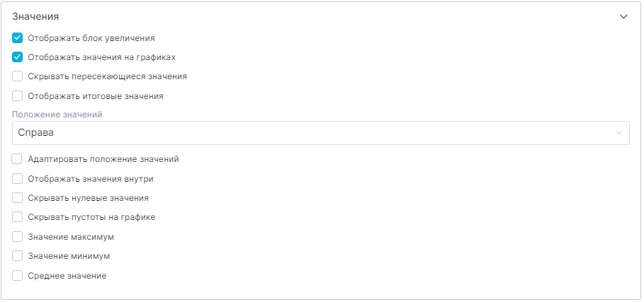 Блок включает в себя параметр «Выделять элемент серии при наведении» – по наведению на линию серии отображать линии других серий с прозрачностью.