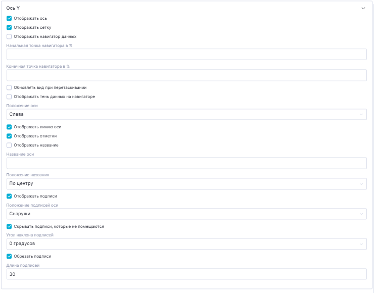 Развернутый блок настроек «Ось Y» в состоянии по умолчанию