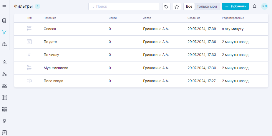 Раздел «Фильтры» предназначен для создания и редактирования шаблонов глобальных фильтров.
