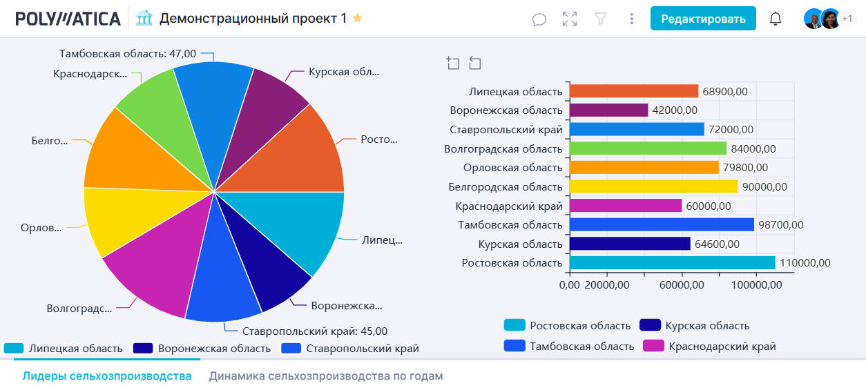 В системе имеется функциональность отображения пользователей, которые находятся в проекте вместе с текущим пользователем в режимах просмотра и редактирования.