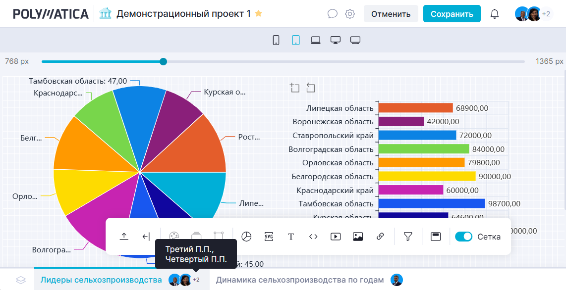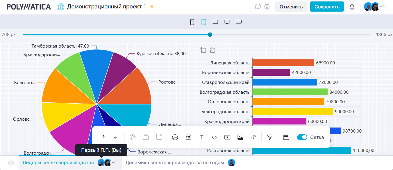 Если проект одновременно просматривают несколько пользователей, в верхней панели проекта, рядом с логотипом текущего пользователя, отображаются иконки других пользователей.