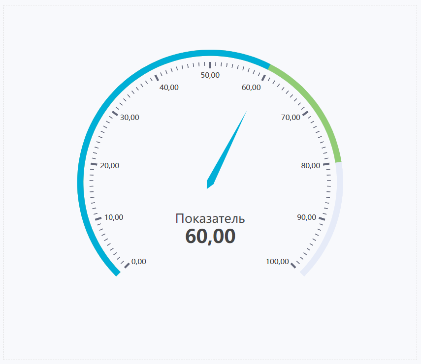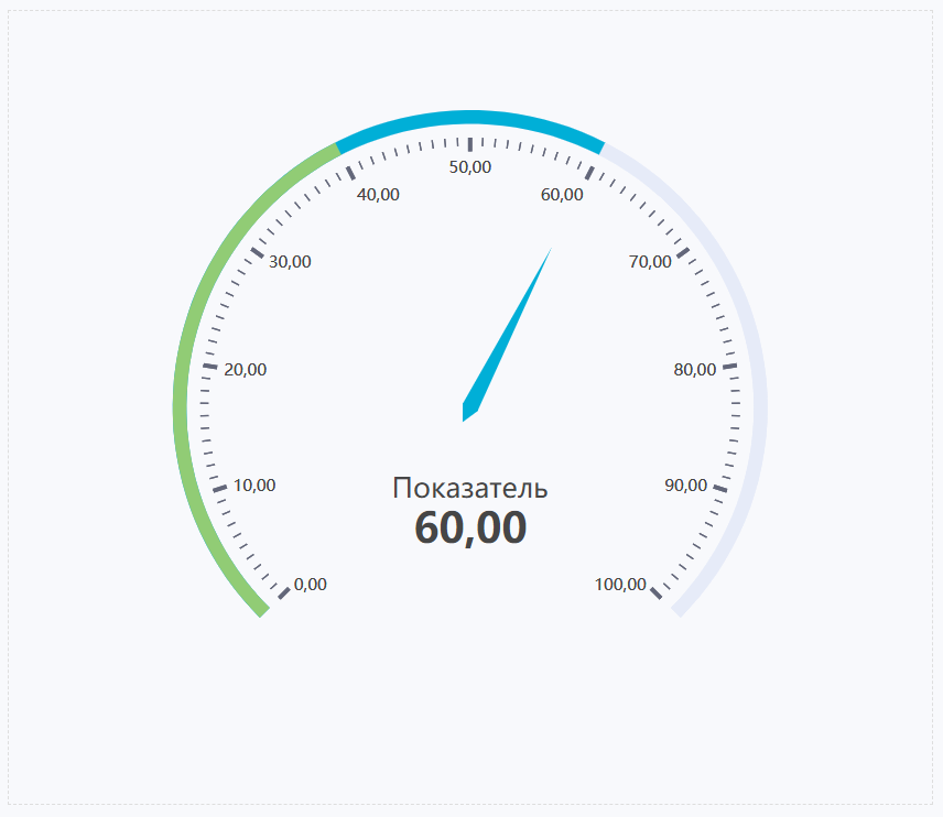 - Отображение фактического значения – отображение в центре спидометра названия колонки, вынесенной в поле «Показатель», и значения показателя.