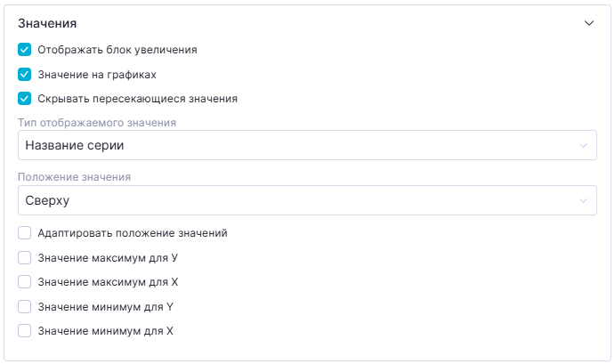 Развернутый блок настроек «Значения» в состоянии по умолчанию