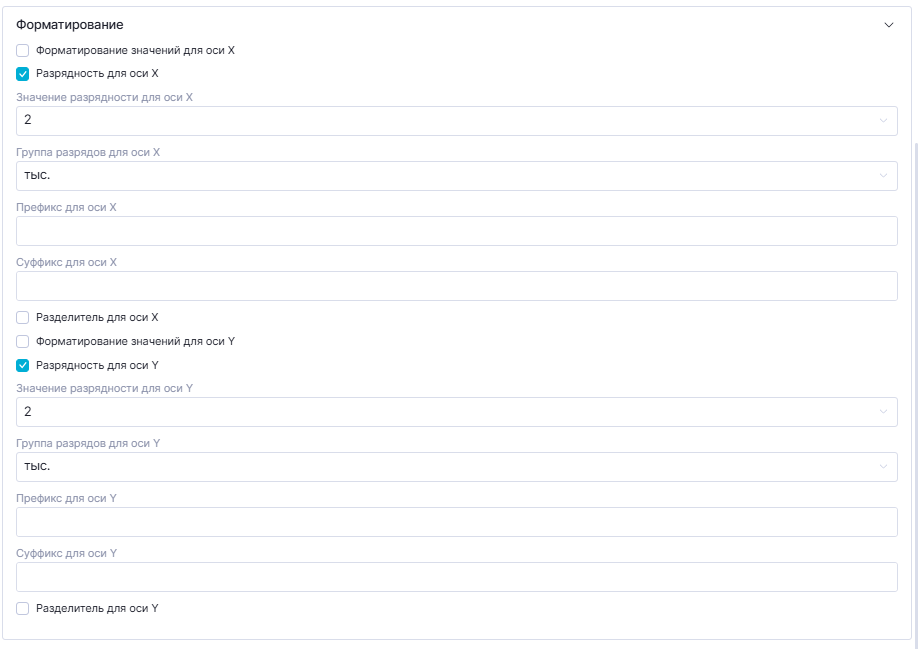Блок служит для настройки форматирования отображаемых значений на осях.