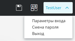 Меню пользователя | Выпадающее меню для смены пароля, настройки параметров входа в систему, а также для выхода из системы |