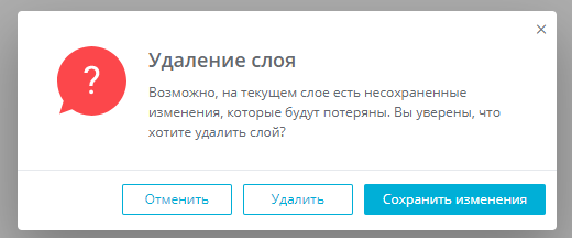 При удалении слоя от пользователя требуется подтвердить удаление этого слоя:Удаление слояВнимание