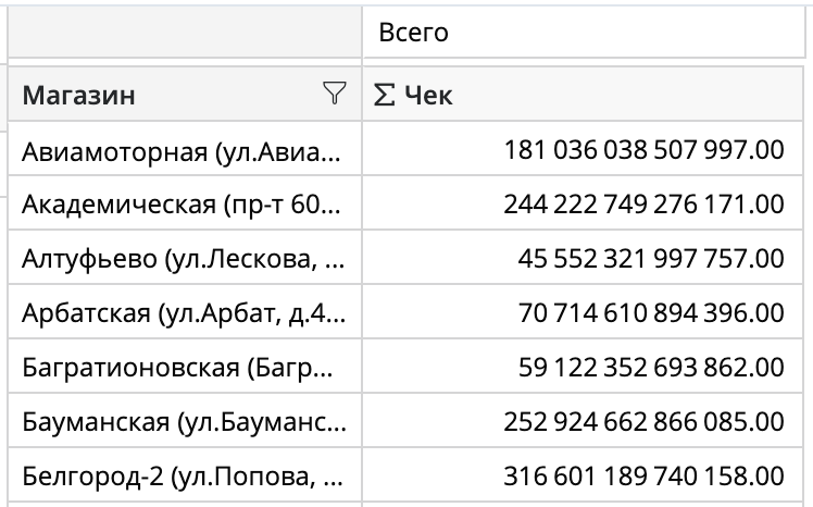 - При расчете по вертикали переключение сортировки неактивно для видов фактов «Изменение»,«Изменение в %», «Нарастающее» и «ABC».