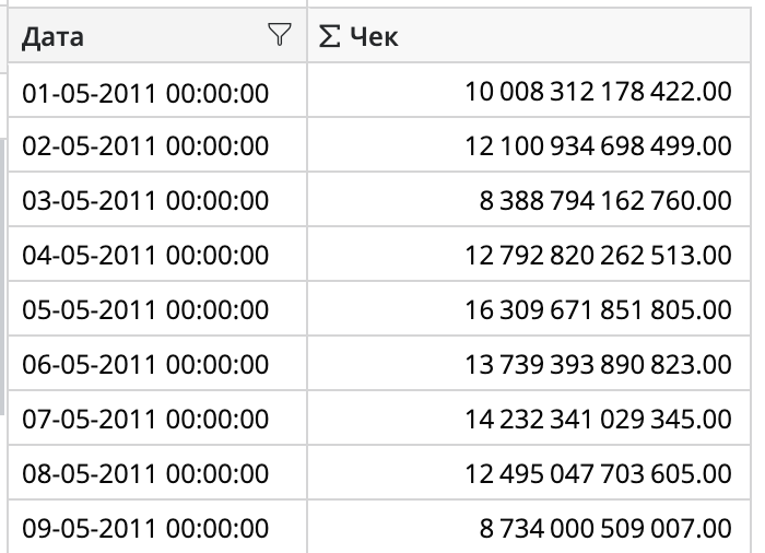 В Polymatica Analytics используется три типа данных: числовые типы (int8, int16, int32, int64, double), дата-время (date, datetime) и строка (string).
