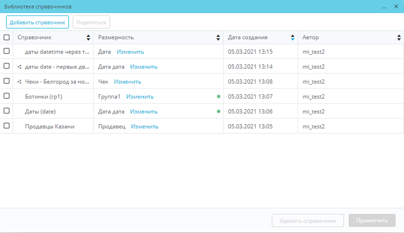 - поделиться справочником (только автор и пользователи с ролью «Администратор системы»);