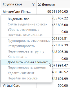 В размерности, в которую необходимо добавить новый элемент, выберите любой элемент и в контекстном меню этого элемента выберите пункт Добавить новый элемент: