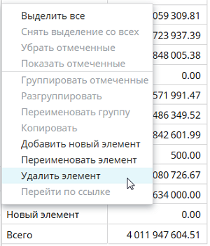 Чтобы удалить элемент, выберите Удалить элемент в контекстном меню элемента: