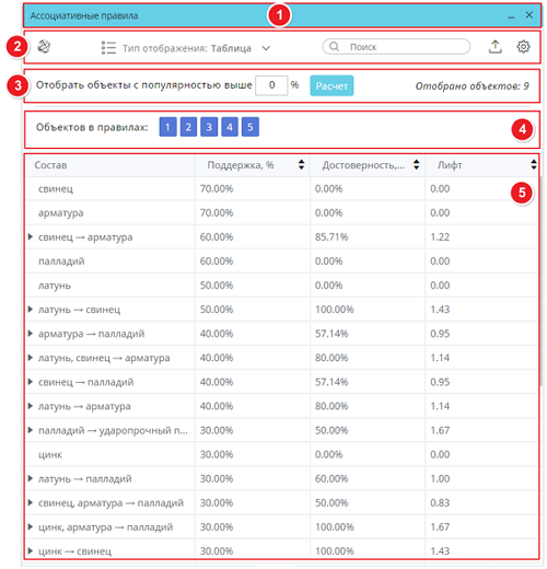 Другие настройки (см. п. Поиск, фильтрация и настройка ассоциативных правил)