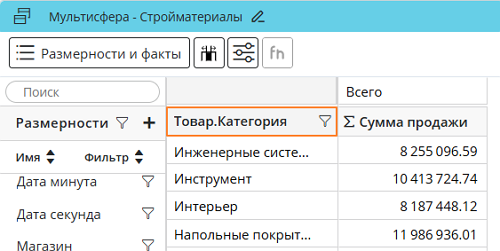 - При расчете не учитывается фильтр, наложенный на верхнюю размерность.