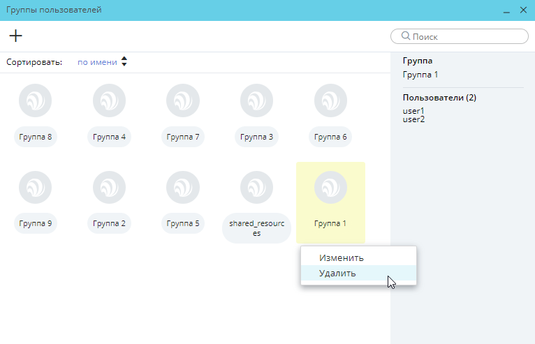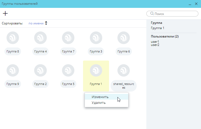 Чтобы редактировать группу, кликните по группе в окне «Группы пользователей» правой клавишей мыши и выберите во всплывающем меню вариант «Изменить».