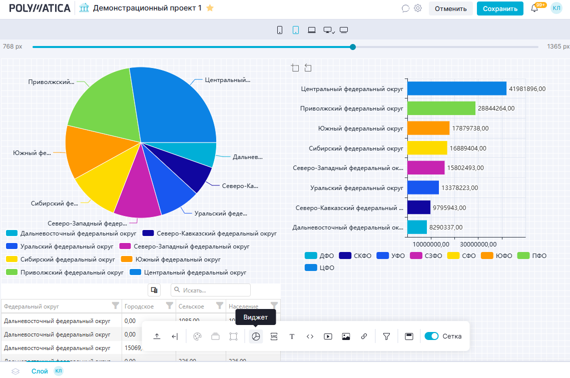 Для создания нового виджета и последующего добавления его на проект нажмите кнопку . По нажатию кнопки открывается окно создания виджета. По завершении создания виджета он размещается на слое.