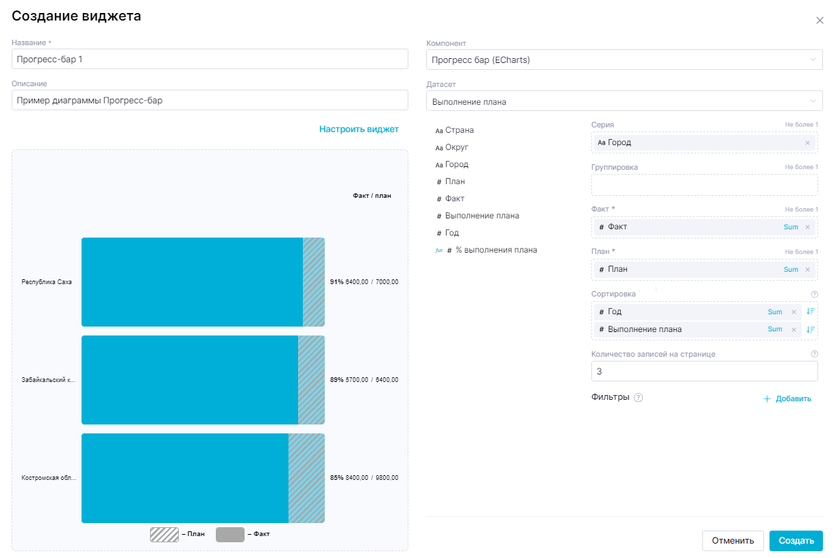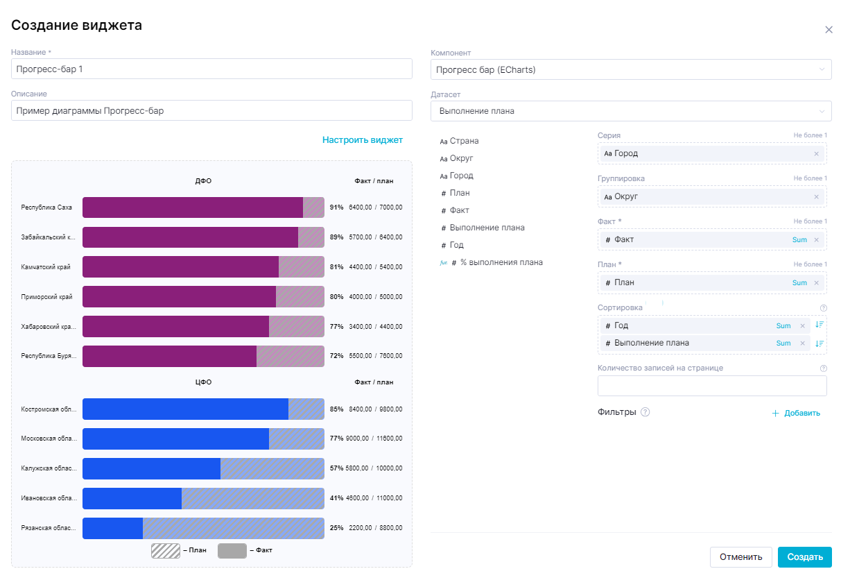 • значения плана и факта – отображаются значения полей «Факт», «План».