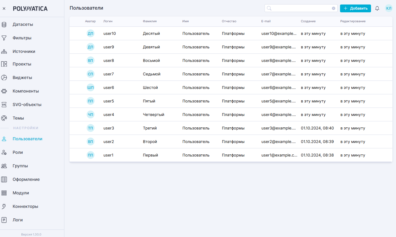 Настройки приложения Polymatica Dashboards TN