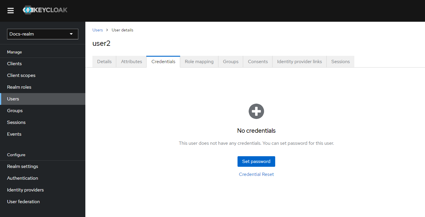 На открывшейся странице с логином пользователя в заголовке перейдем в секцию Credentials и кликнем на ней кнопку Set password.
