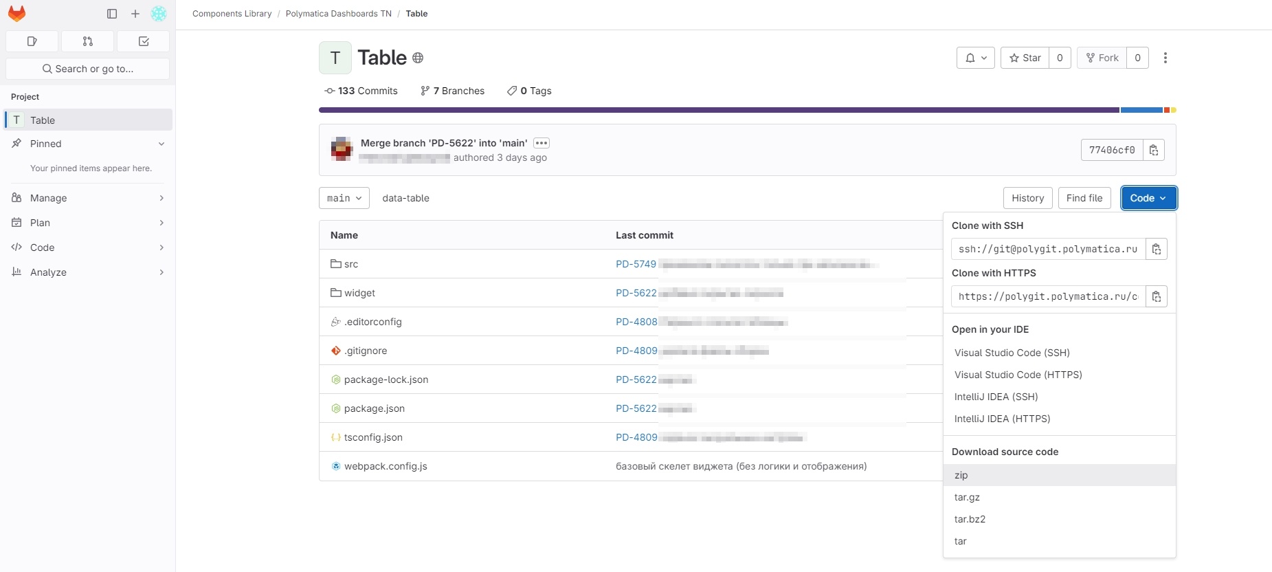 1. Загрузить исходный код компонента из GitLab при помощи кнопки "Code".