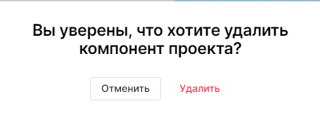 Для удаления необходимо нажать на кнопку в верхнем правом углу области компонента. Отобразится окно подтверждения удаления, для удаления необходимо нажать "Удалить", для отмены - "Отменить".