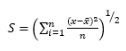Отклонение используется для оценки среднеквадратического отклонения значений элементов вложенной размерности. Для расчета этого вида факта в Polymatica Analytics используется следующая формула: , где xi-й элемент выборки, n — объем выборки,  — среднее арифметическое выборки.