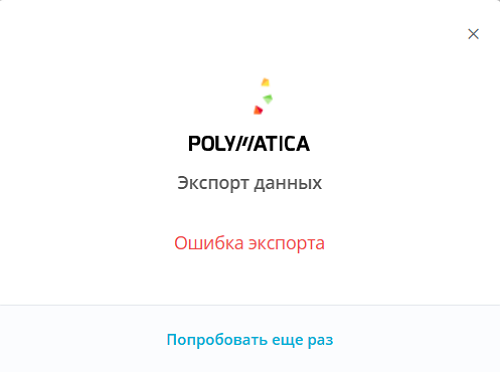Индикатор прогресса экспортаВ случае невыполнения операции система проинформирует пользователя соответствующим уведомлением. Нажатие на кнопку «Попробовать еще раз» повторно запустит процесс экспорта данных.
