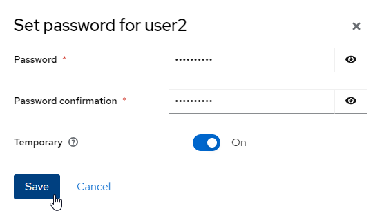 В открывшемся окне Set password укажем в обоих полях временный пароль учетной записи для входа в систему и кликнем кнопку Save.