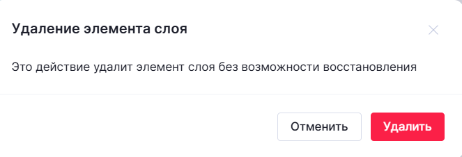 Для удаления необходимо нажать на кнопку в верхнем правом углу области компонента. Отобразится окно подтверждения удаления, для удаления необходимо нажать "Удалить", для отмены - "Отменить".