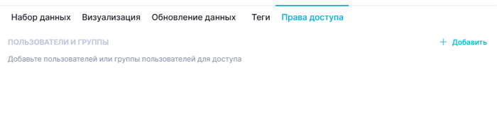 Вкладки "Визуализация", "Обновление данных", "Теги" и "Права доступа" становятся активными, когда в области настройки данных заполнены обязательные поля данных виджета.