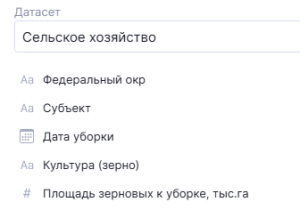 Под полем «Датасет» отображаются колонки выбранного датасета
