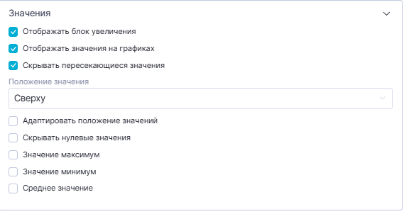 - «Отображать значения на графиках»;