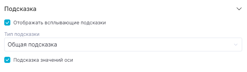 Всплывающие подсказки – отображение подсказки по наведению на точку графика. В подсказке отображаются значения полей «Ось X», «Серия», «Ось Y»