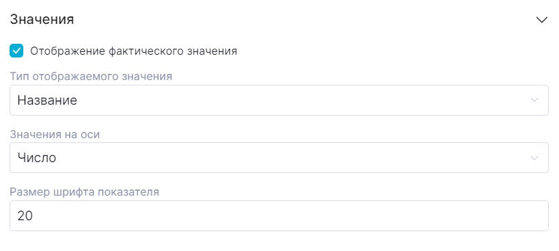 - Отображение фактического значения – отображение в центре спидометра названия колонки, вынесенной в поле «Показатель», и значения показателя.