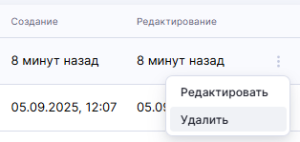 Для удаления темы из реестра выберите в меню действий вариант «Удалить».