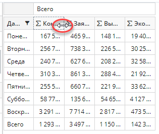 Для удобства просмотра данных можно менять ширину столбцов в области данных:
