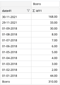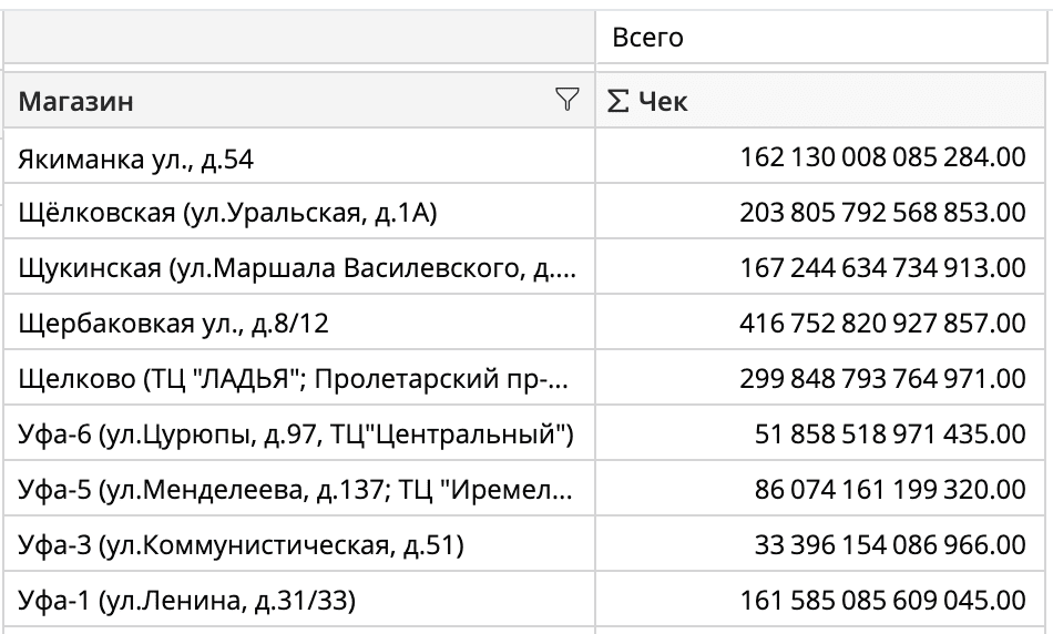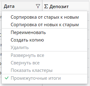 - При расчете по вертикали переключение сортировки неактивно для видов фактов «Изменение»,«Изменение в %», «Нарастающее» и «ABC».