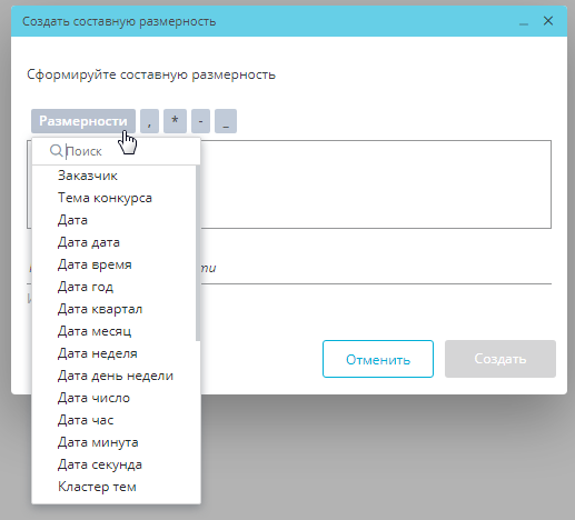 Кнопка «Размерности» и список размерностейВыберите необходимые размерности для формирования составной размерности: