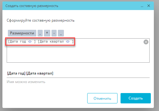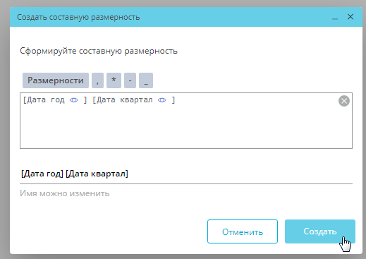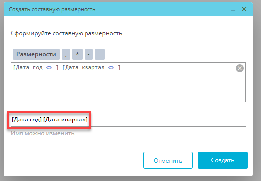 Кнопка «Создать составную размерность»Будет открыто окно создания составной размерности: