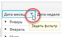 1. Нажмите на иконку фильтра в размерности: