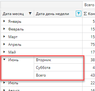Результат группировки для рисунка Результат опции «Выделить все» для элемента размерности «Июнь»