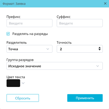 - Формат – позволяет настроить формат отображения значений факта или нескольких выделенных фактов: