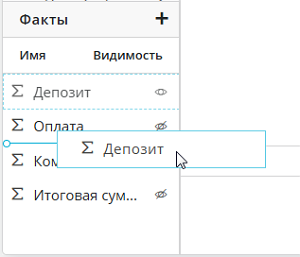 На панели Размерности и факты, в блоке фактов, можно изменить порядок фактов простым перетаскиванием.